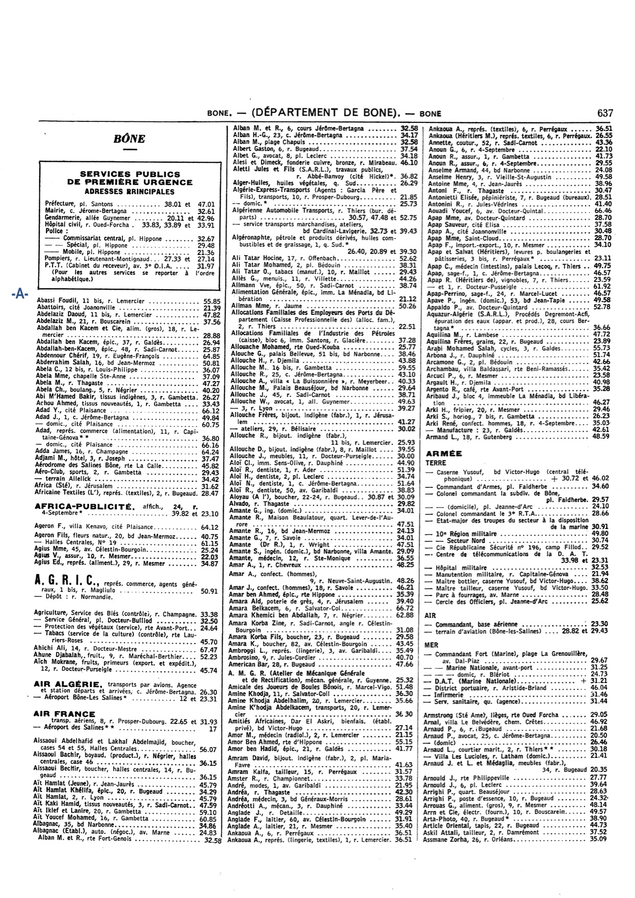 L'annuaire téléphonique de Bône (Annaba) de 1961-1962 est disponible pour tous ceux qui ont besoin de se rafraîchir la mémoire, de retrouver le nom ou le numéro d'une rue, de vérifier une adresse, de vérifier un nom ou un prénom,...
