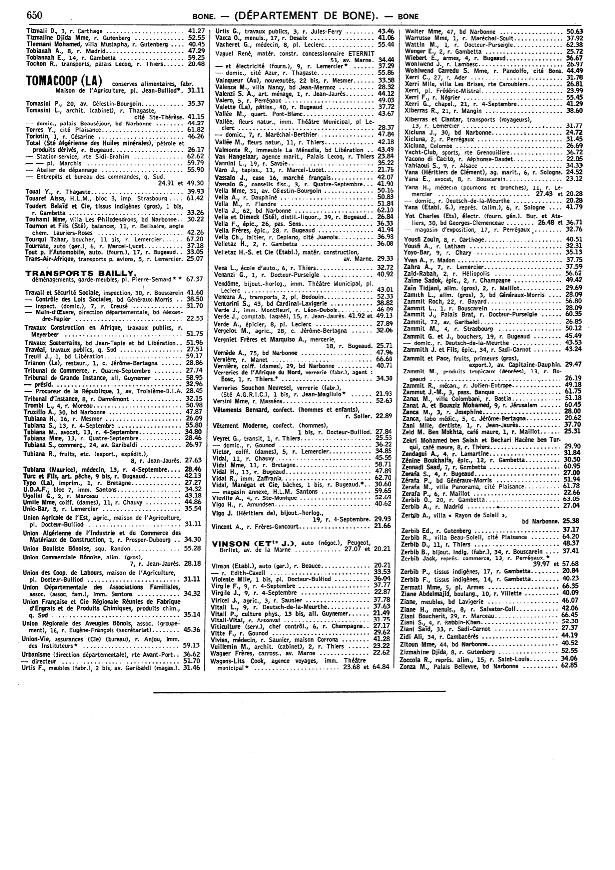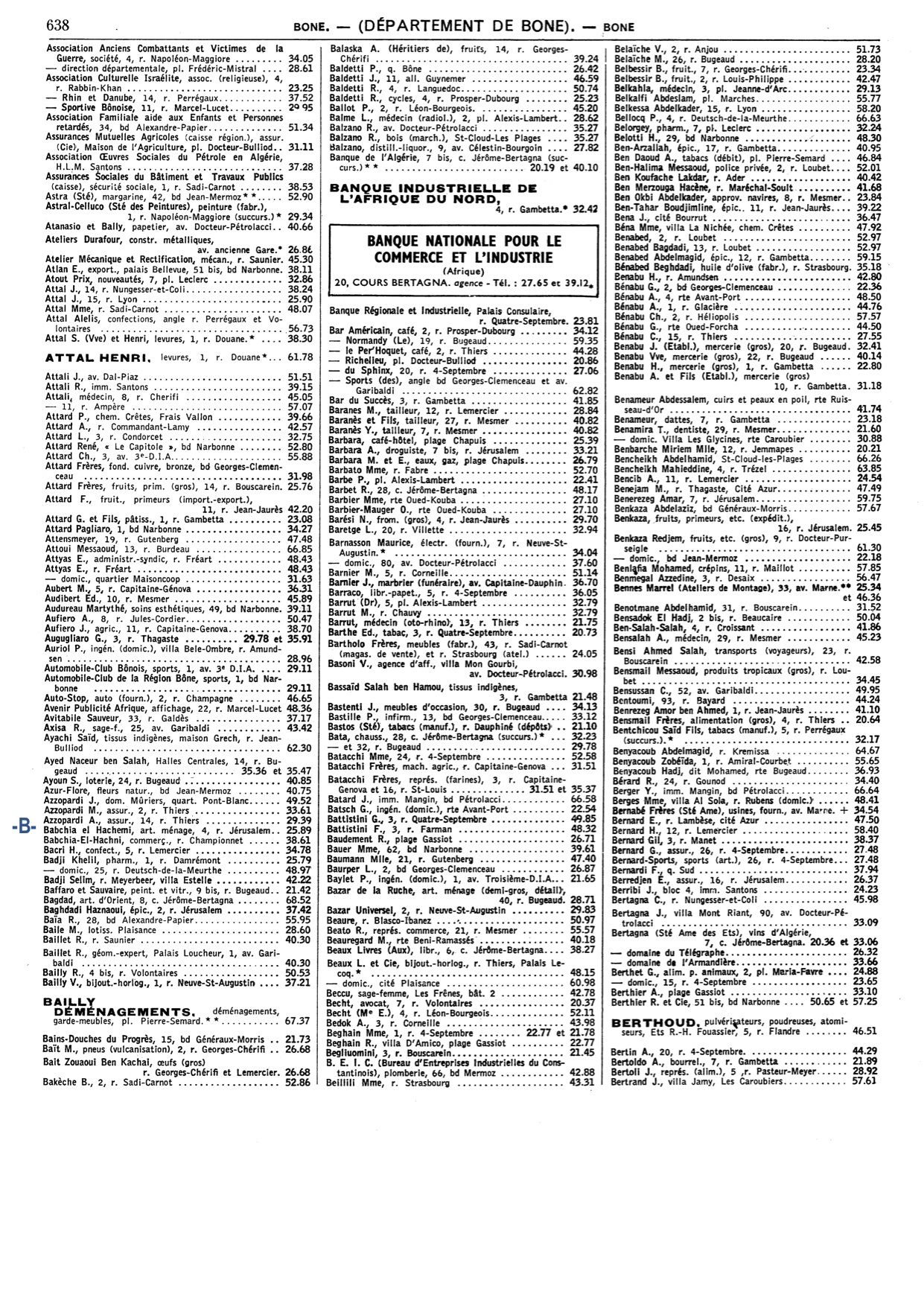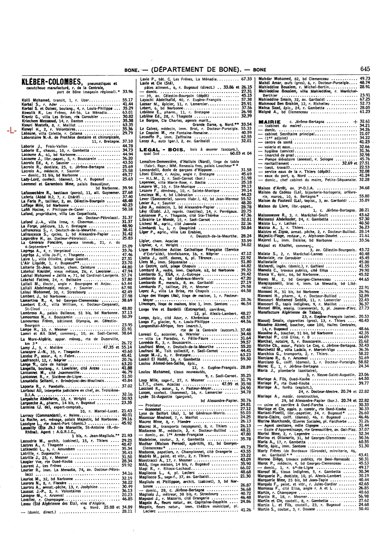 Cet annuaire proposé par un membre du site est une mine d'informations pour tous, ceux qui ont vécu à cette époque à Bône comme ceux qui n'ont fait qu'en entendre parler!