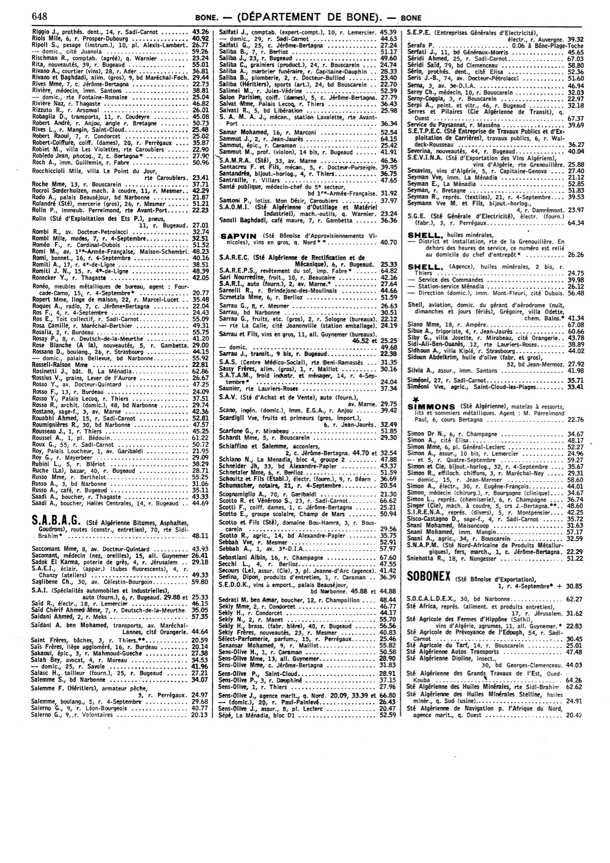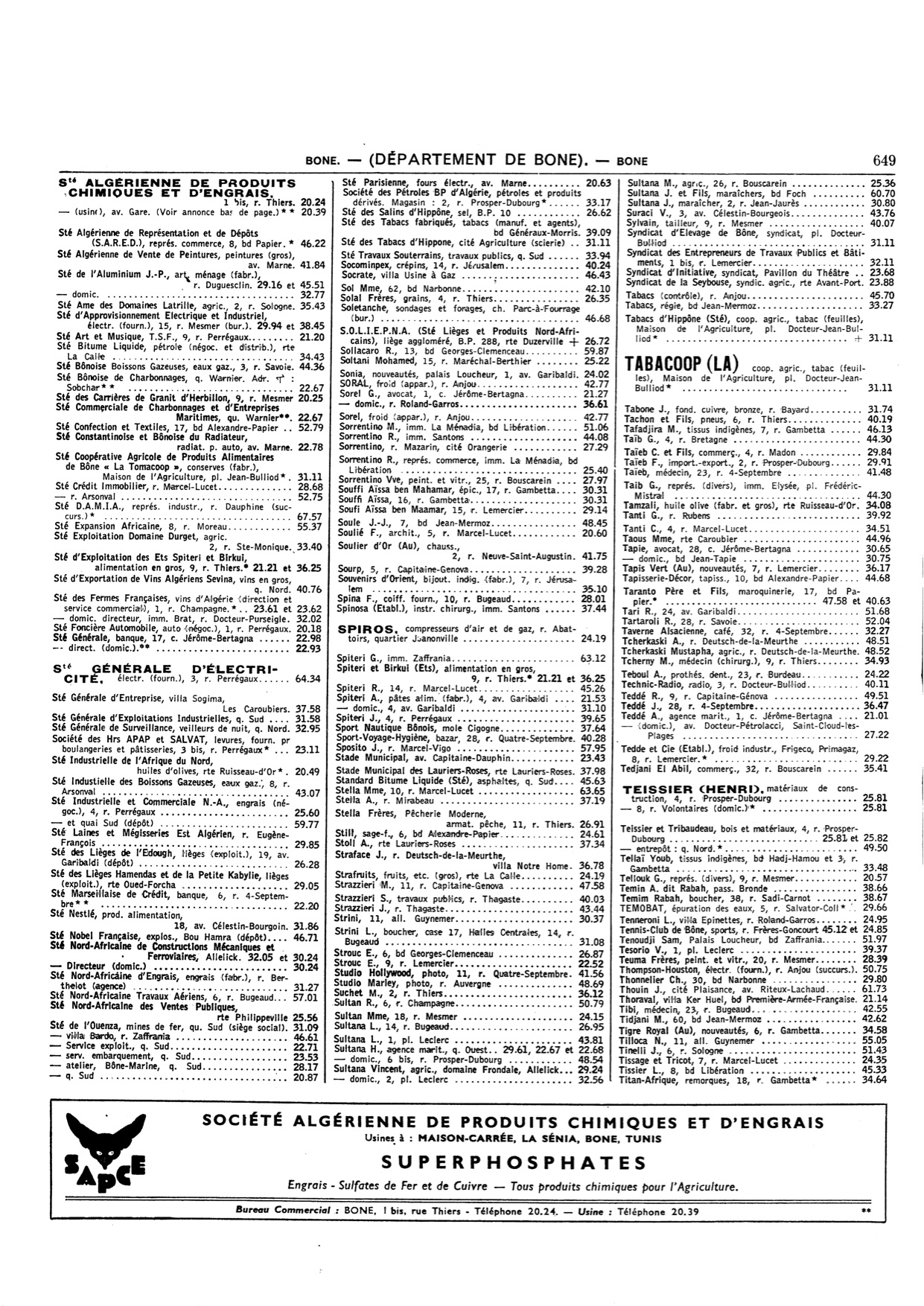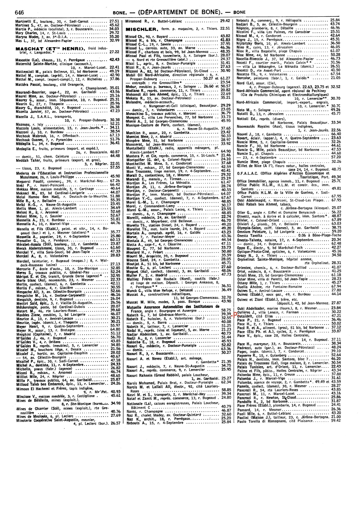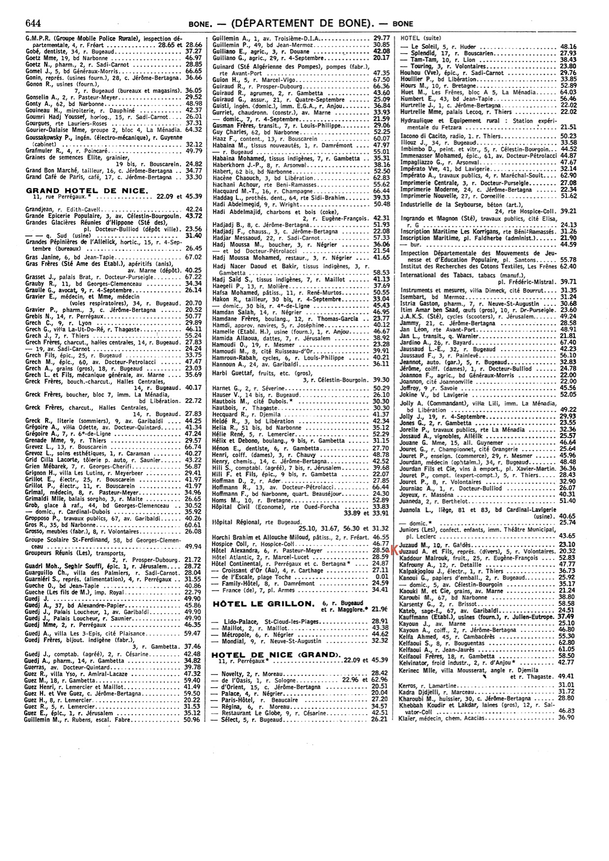 Cet annuaire proposé par un membre du site est une mine d'informations pour tous, ceux qui ont vécu à cette époque à Bône comme ceux qui n'ont fait qu'en entendre parler!