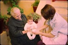 Agnès bébé dans les bras de sa mère
