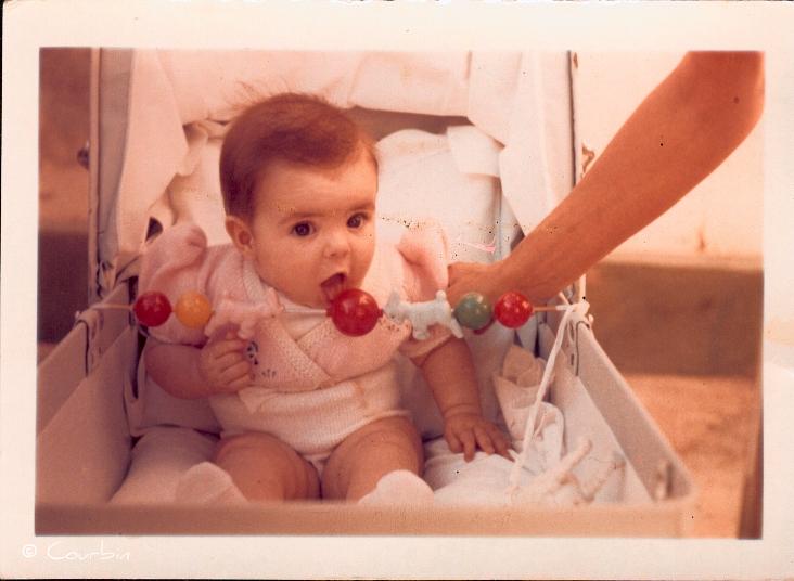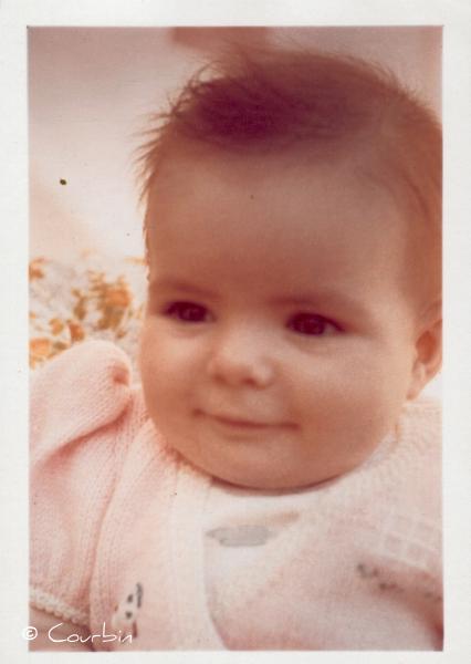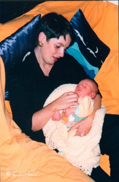Arthur bébé dans les bras de Marie-Hélène