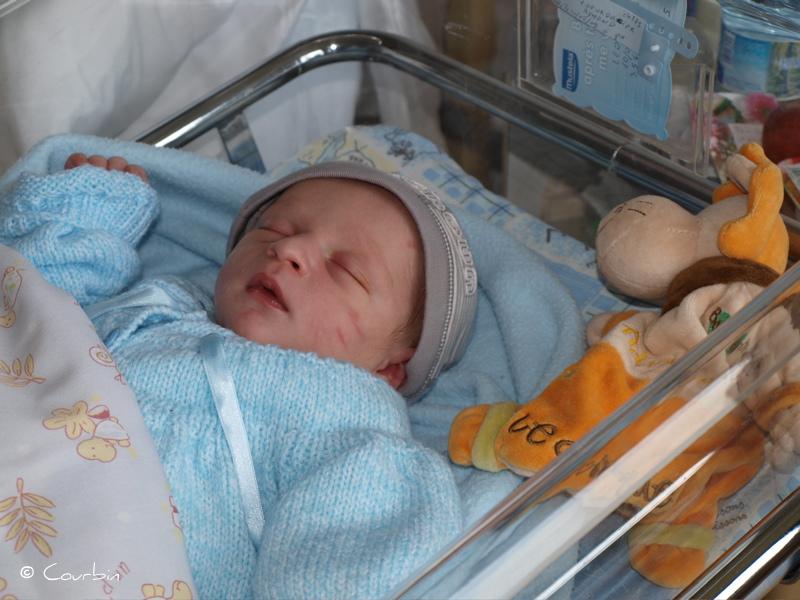 Arthur bébé dans les bras de Marie-Hélène