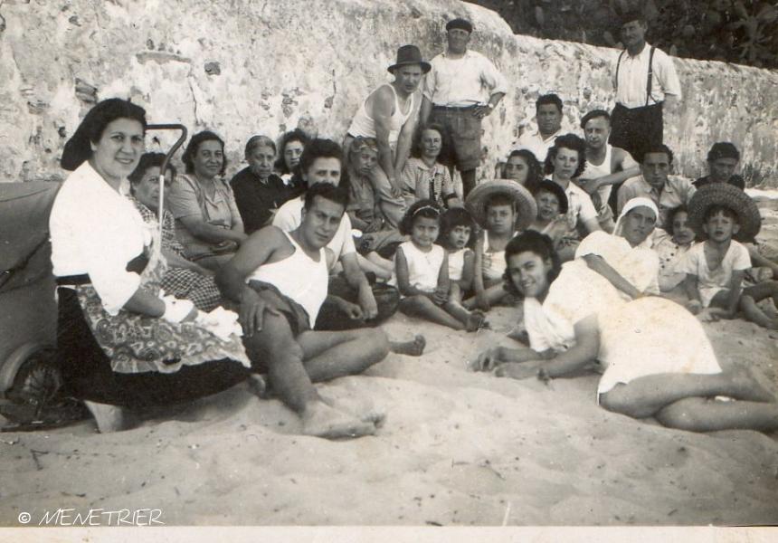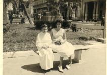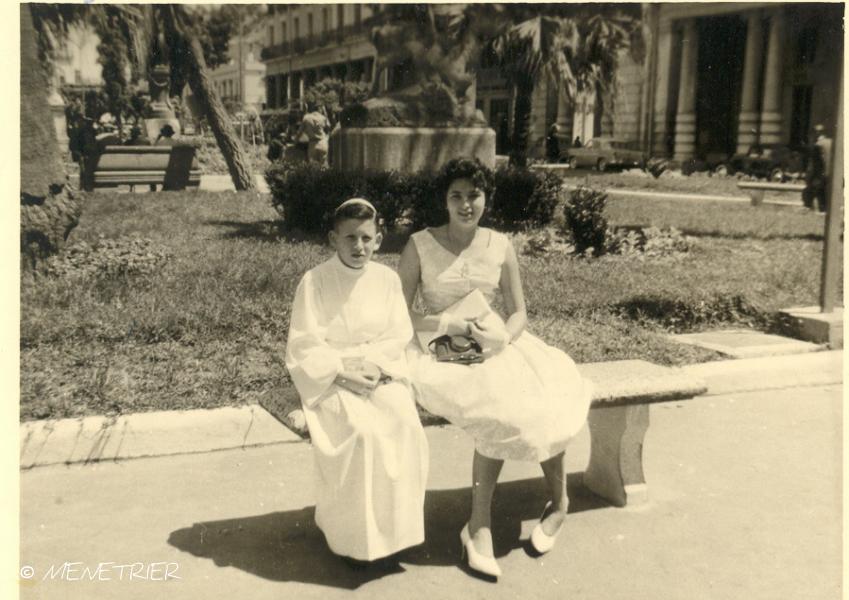 maman . moi a droite et dominique a gauche sur le cour bertagna a bône en 1955